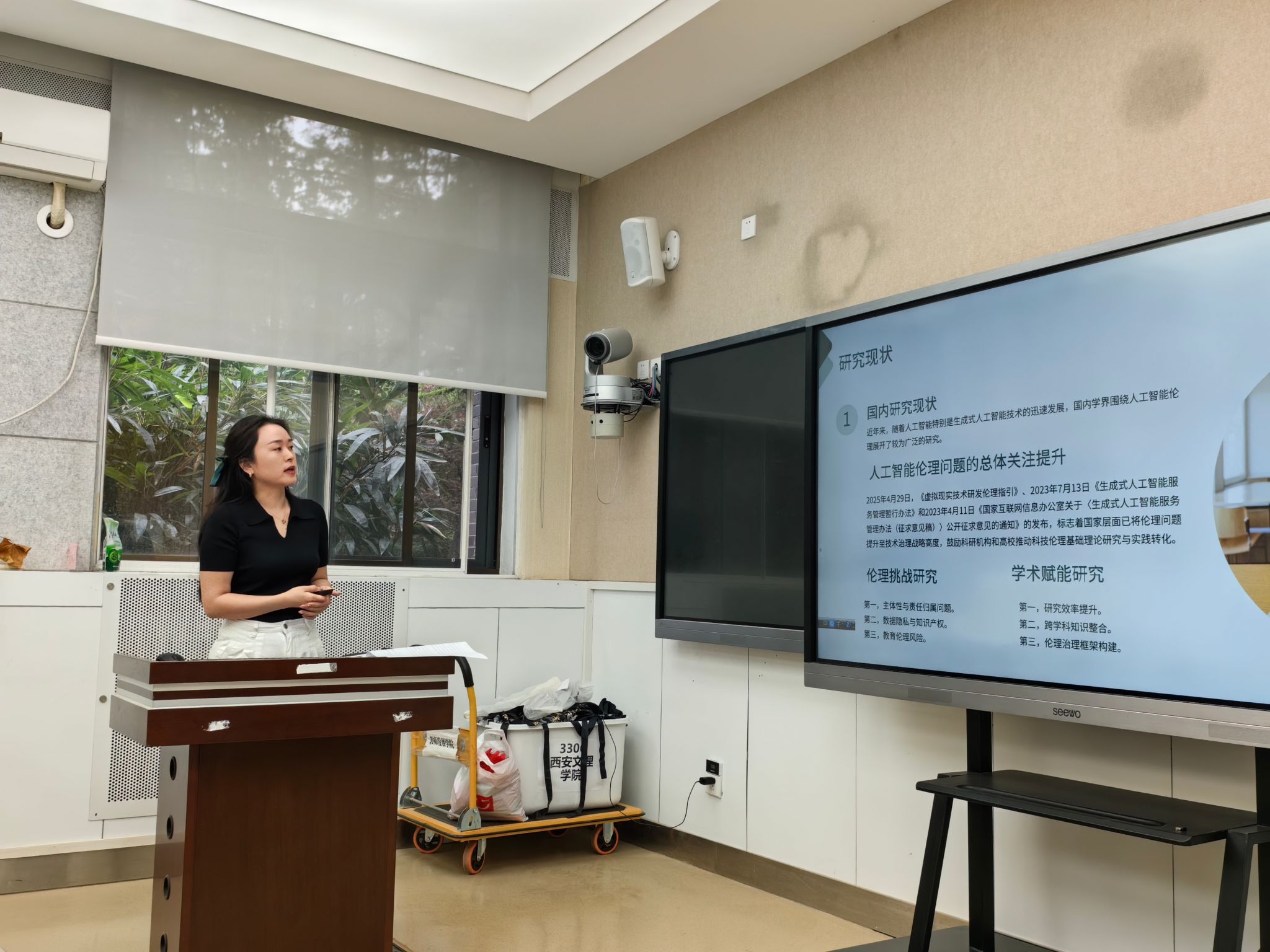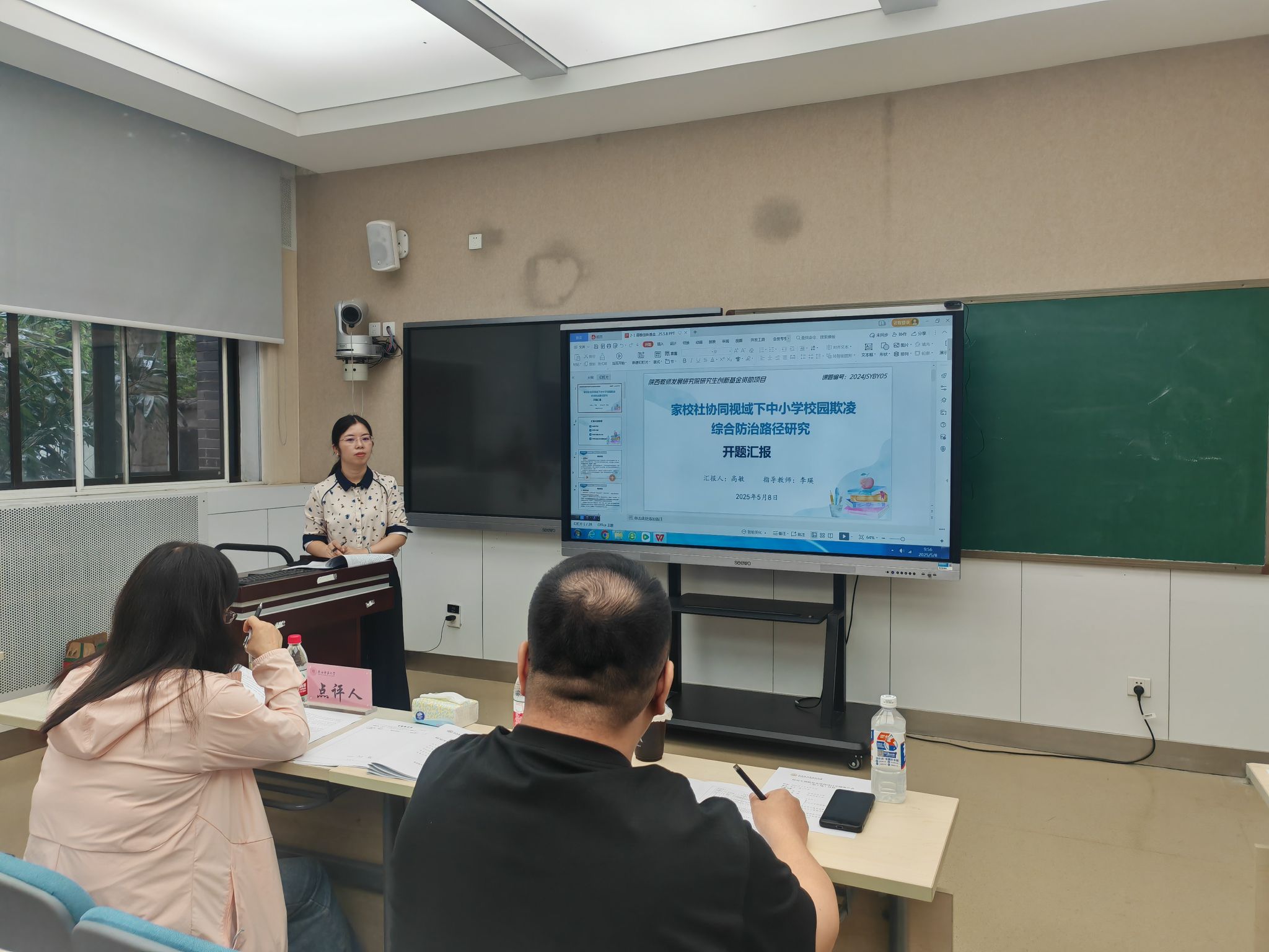 会上,高敏、延艳娜、杨莹、刘晶、姚思佳五位项目负责人依次对《家校社协同视域下中小学校园欺凌综合防治路径研究》《MOOC平台个性化学习倦怠预警与精准干预策略》《“他者”视角下生成式人工智能的伦理挑战与学术赋能研究》《初中英语课堂中社会与情感能力培养的实践研究》《父母心理控制对青少年手机依赖的纵向影响:反刍思维和社交焦虑的链式中介作用》进行开题汇报,从选题背景和意义、国内外研究现状、研究价值、研究思路与设计、预期成果等方面进行全面阐述。