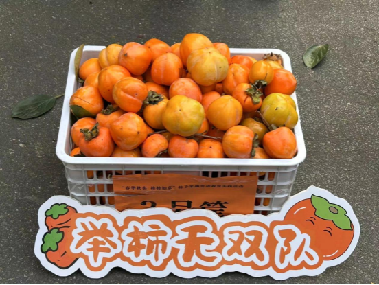 在此次摘柿子活动中,经过称重和评选,三公由张纲老师带领的“举柿无双”队(队员分别为李沂薇、冯盼盼、贾芳雨、刘瑞盈、雷晴)获得了采摘总重量冠军。