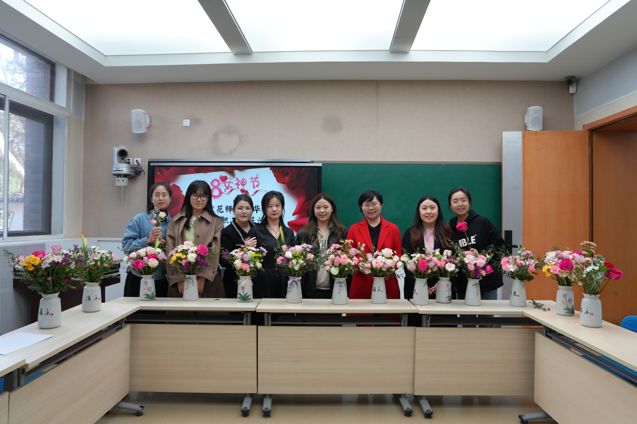 3月8日上午,在第114个国际妇女节到来之际,三公以“献花师大80华诞”为主题举办了女教职工插花活动,三公 女教职工参与此次活动。