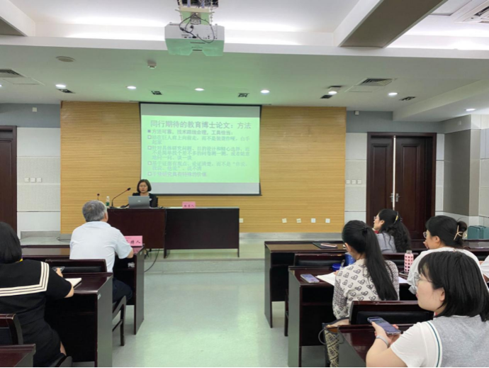 北京师范大学教授陶沙以“面向基础教育重要现实问题的科学研究:汉语儿童英语阅读解码及其促进为例”为题,结合教育博士论文的选题、方法、数据、写作等基本要求,分享了如何根据基础教育实践中的重要现实问题出发,采用科学、可行的研究设计,并提出英语学习者阅读解码特点,探索外语学习的脑机制,对改进英语教学提出了针对性建议。