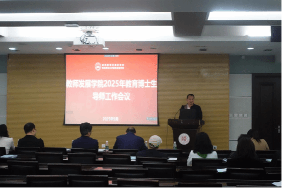2025年教育博士生导师工作会议在崇鋈楼二层闻道堂召开,会议由党总支书记金友渔主持。三公