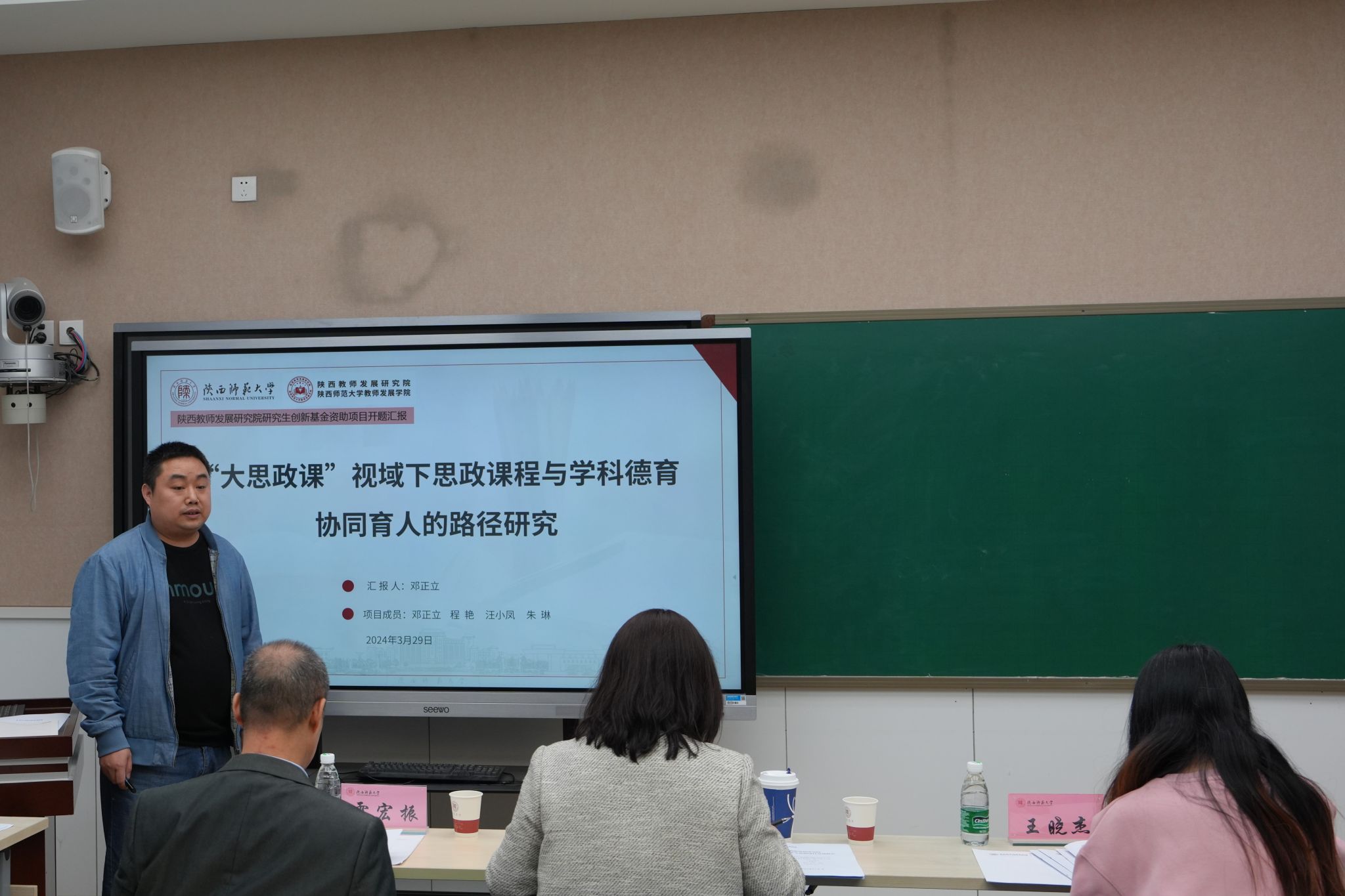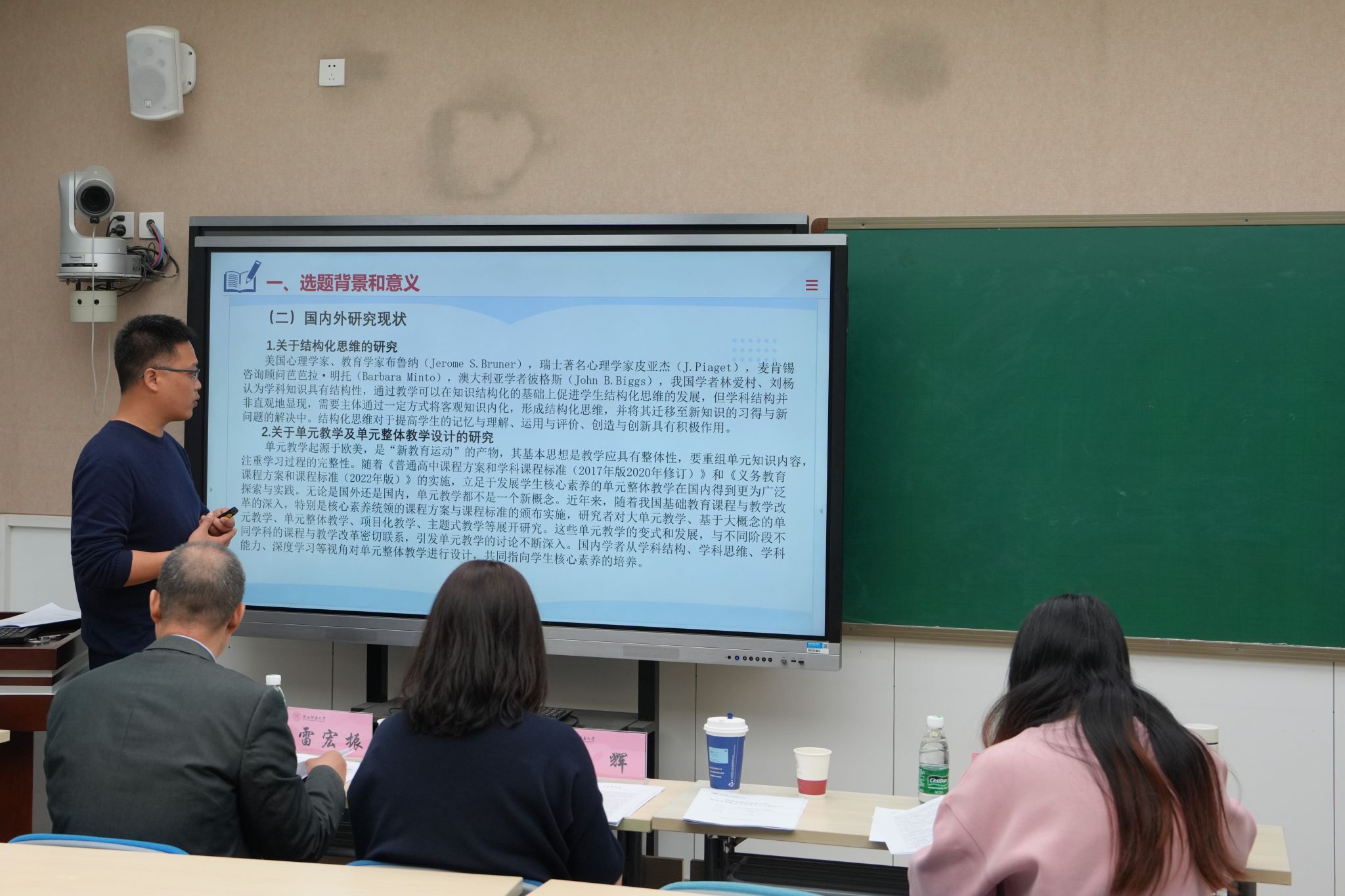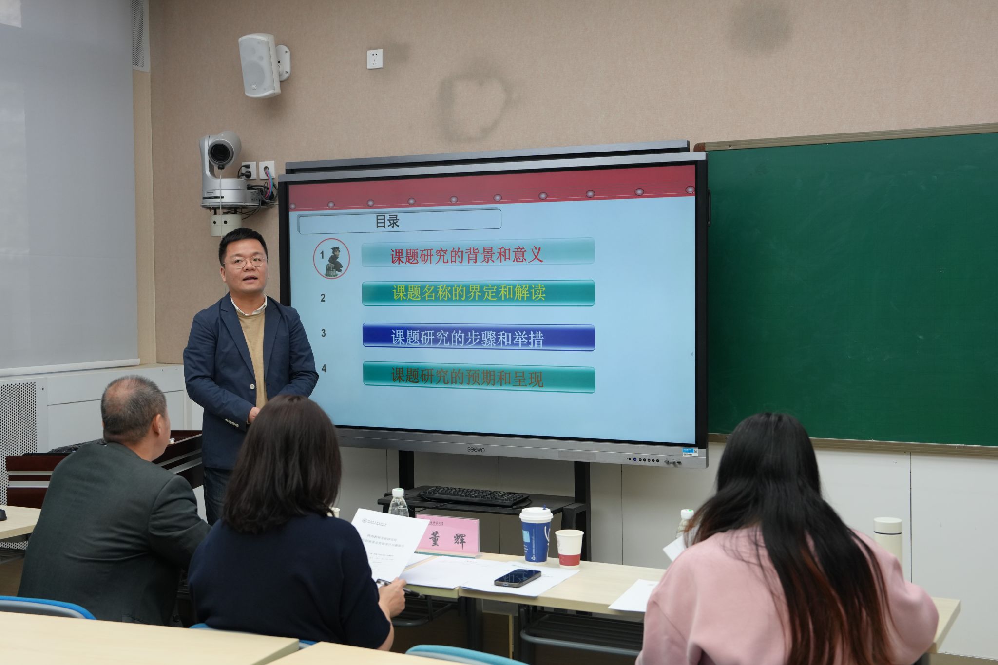 开题报告会上,教育博士生邓正立、周晋阳、孔令元、黄鹏飞四人依次现场汇报自己的创新基金课题《“大思政课”视域下思政课程与学科德育协同育人的路径研究》《指向结构化思维的单元整体教学设计研究》《“三新”背景下的高考语文命题研究》《教育现代化背景下地方行业特色高校高质量发展路径研究》,分别从研究背景和意义、研究现状、研究目标、研究内容、研究方法、主要创新点及预期成果等方面进行了现场汇报。
