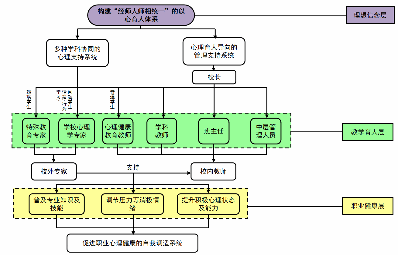基于各类学生心理支持需求出发,将教师以心育人的工作机制为三个层次:
